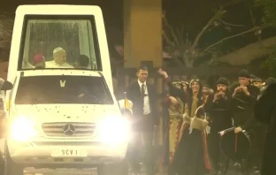 وصلت في هذه الأثناء، سيارة البابا موبيلي إلى مدخل عنايا عند حاجز الجيش والتي سيستقلها البابا لاوون الربع عشر إلى مدخل الدير لمباركة المواطنين المصطفين على طول الطريق.