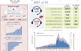 أفاد التقرير اليومي لمستشفى رفيق الحريري الجامعي عن آخر المستجدات حول فيروس كورونا /Covid-19 بوجود 16 حالة حرجة لديه وحالة وفاة. وجاء في التقرير: – عدد الفحوص التي أجريت داخل…