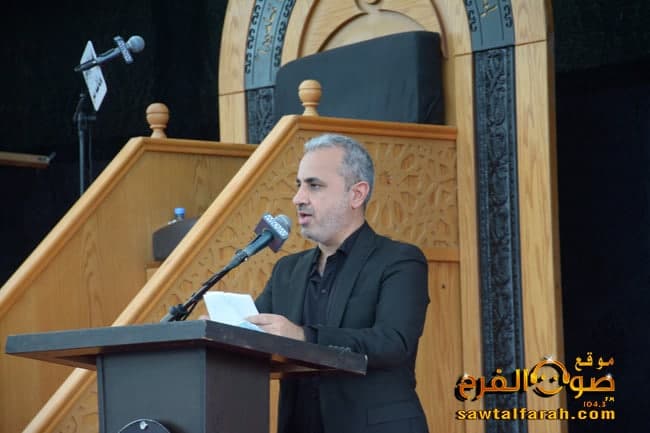 بعد تلاوة آيات من الذكر الحكيم للقارئ هادي فقيه وتقديم من المسؤول الإعلامي للإقليم علوان شرف الدين، اعتلى المنبر سماحة الخطيب الحسيني السيد نصرات قشاقش ليتلو السيرة الحسينية العطرة.