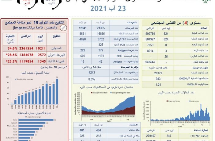 محليات وزارة الصحة: تسجيل 3 حالات وفاة و624 إصابة جديدة بفيروس كورونا By F.S أغسطس 23, 2021 لا توجد تعليقات وزارة الصحة: تسجيل 3 حالات وفاة و624 إصابة جديدة بفيروس كورونا وزارة الصحة