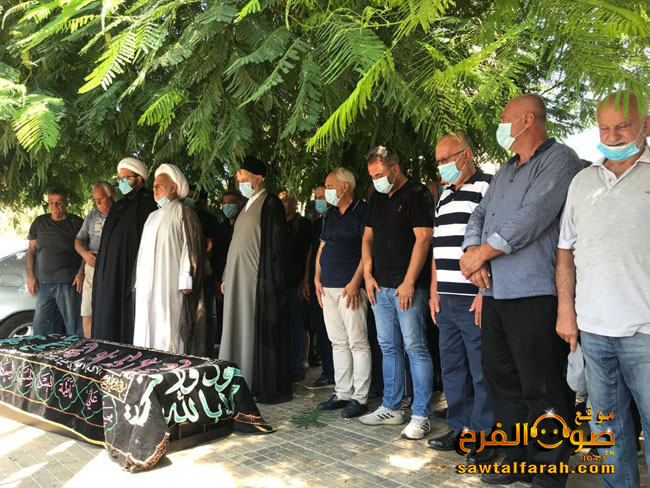 صلّى على الجثمان الطاهر فضيلة الشيخ علي حب الله بعدها ووري الجثمان الثرى في مدافن محلة النبي اسماعيل وتقبل ال الفقيدة التعازي من الشخصيات والاهالي، فيما يواصلون تقبلها في قاعة مسجد الخضرا في صور ٠