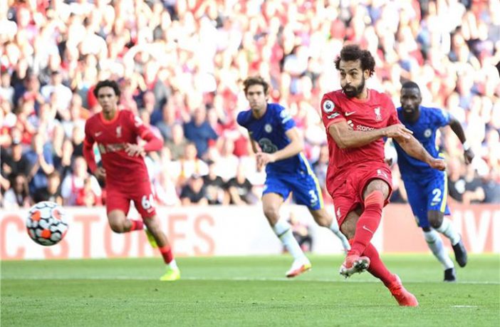 ونفذ صلاح ركلة الجزاء بنجاح معدلًا النتيجة لليفربول، مسددًا كرة قوية على يمين ميندي، لينتهي الشوط الأول بالتعادل (1-1).