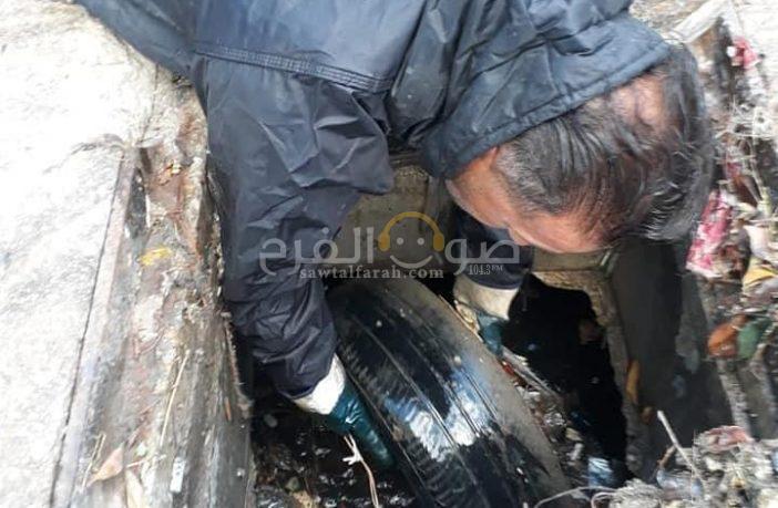 منذ اكثر من اسبوع وعمال بلدية صور يقومون بتنظيف مصافي مجاري المياه في منطقة المساكن.