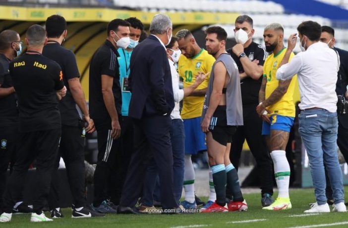وبعد انطلاق المباراة بنحو 6 دقائق، تفاجأ الجميع بدخول مسؤولي الصحة في البرازيل ملعب المباراة للمطالبة بخروج 4 لاعبين من المنتخب الأرجنتيني قادمين من إنجلترا بسبب مخالفتهم المزعومة لبروتوكول الصحة المعمول به في البرازيل، مما تسبب في انسحاب المنتخب الأرجنتيني من المباراة.