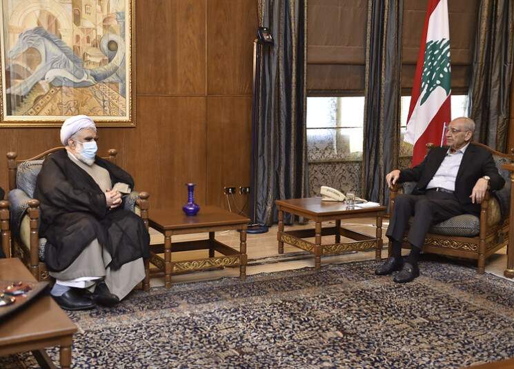 استقبل رئيس مجلس النواب نبيه بري، ممثل مرشد الثورة الاسلامية الإيرانية الإمام السيد علي الخامنئي، ورئيس المجلس الأعلى للمجمع العالمي لأهل البيت الشيخ محمد حسن أختري والوفد العلمائي والرسمي، الذي شارك في تشييع رئيس المجلس الإسلامي الشيعي الأعلى الامام الشيخ عبد الامير قبلان، في حضور المستشار الثقافي للجمهورية الإسلامية الإيرانية في لبنان عباس خامه يار.