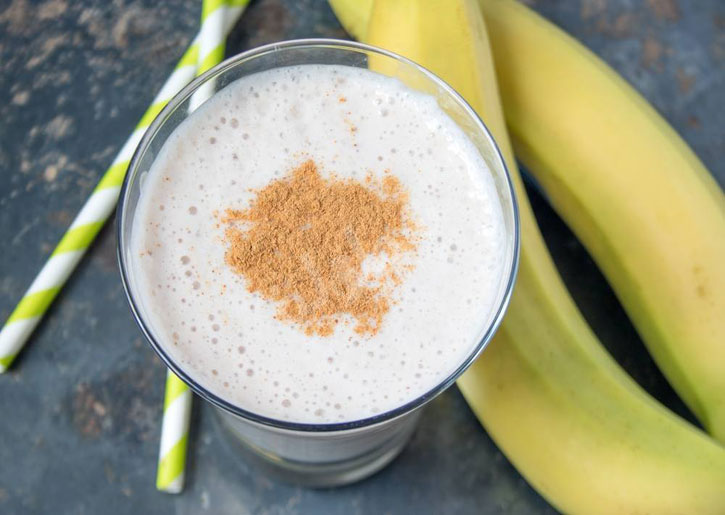وجبة خفيفة. كوب متوسط الحجم من مخفوق الموز والقرفة مع ملعقة صغيرة من العسل.