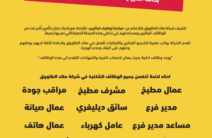 محليات الملك عم يوظّف… في كافة الفروع المنتشرة بجميع الأراضي اللبنانية By F.S سبتمبر 22, 2021 لا توجد تعليقات ملك الطاووق