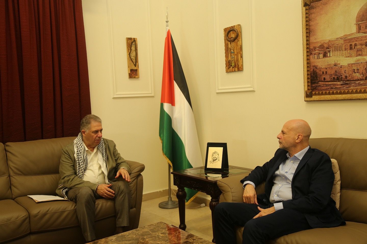 وجرى خلال اللقاء بحث اوضاع المخيمات الفلسطينية من كافة جوانبها الخدماتية والحياتية والمعيشية وبذل الجهد لتحسين الاداء مما يساهم في تخفيف المعاناة عن ابناء شعبنا في لبنان.