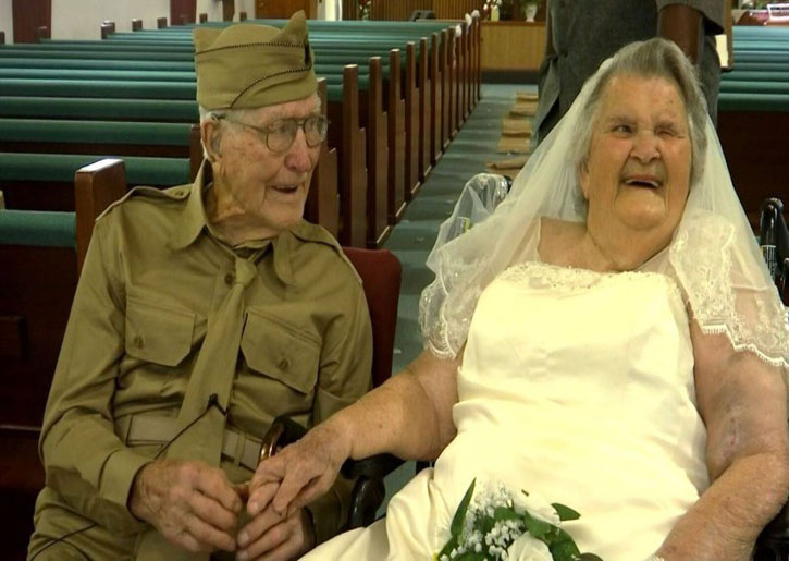 وقالت لورين لشبكة WCHS-TV أثناء حفل الزفاف الذي شهد ارتداء زوجها للبدلة العسكرية التي ارتداها خلال خدمته في الحرب العالمية الثانية: «أشكر الله عليه، لم أجد أفضل منه».