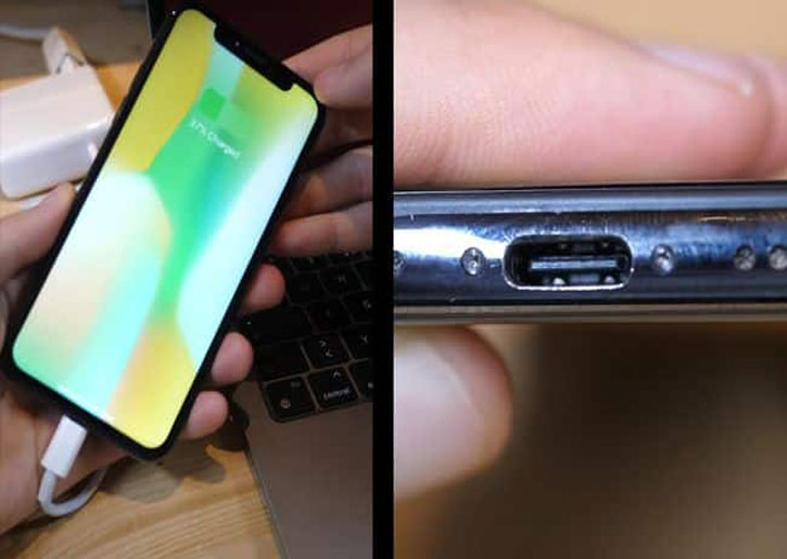 ووضع كين بيلونيل منفذ USB-C عاملاً داخل جهاز iPhone X، مما يسمح للهاتف بشحن البيانات ونقلها عبر منفذ USB-C بدلاً من منفذ Lightning.