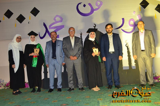 وقد تخلل الحفل توزيع الدروع التكريمية على الطلاب الخريجين وتقديم درع تكريمي لنادي الرسالة الرياضي لصعوده الى الدرجة الثالثة تسلمه رئيس النادي ابراهيم دبوق.