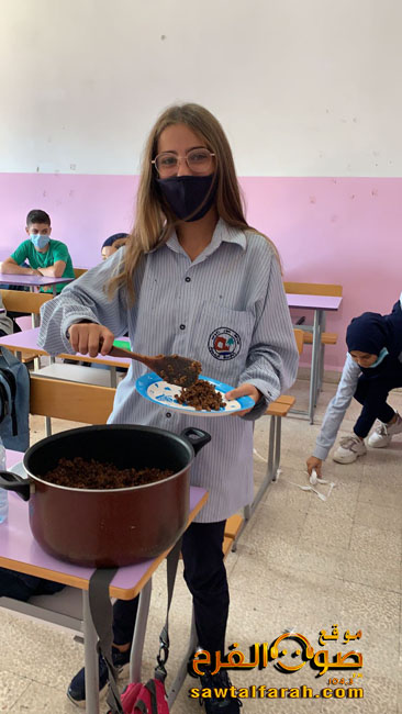 هذه المرّة كانت المبادرة من العاملات في مدرسة صور الأولى المتوسطة الرسمية وبإشراف المرشدة الصحية الأستاذة سعاد عواضة،حيث قمنَ بتحضير وجبة المجدّرة التي تحمل رائحة الماضي الجميل، وهي الوجبة الصحيّة التي يرغبها الجميع، فالعاملات قمنَ بتوزيع الأطباق على كلّ الطلّاب وأفراد الهيئة التعليمية وبإشراف مديرة المدرسة الاستاذة إيمان جمعة.