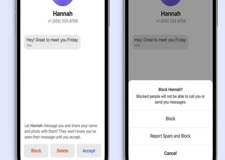 وإذا قام المستخدم بالنقر على بند “الإبلاغ عن الرسائل المتطفلة Spam وحظرها”، فإنه سيتم إرسال رقم الهاتف الذكي لمرسل الرسالة المتطفلة والهوية المجهولة، والتي تستعمل لمرة واحدة إلى خدمة Signal، وفي حالة الإبلاغ عن رقم الهاتف بشكل متكرر، أو ظهر أنه يقوم بإرسال الرسائل العشوائية بشكل آلي، فإنه سيطلب منه حل لغز (CAPTCHA) لإبطاء حملة البريد المتطفل التلقائي.