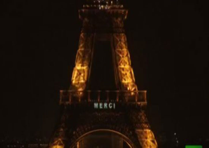 قدمت باريس التحية لمنظمة الأمم المتحدة للتربية والعلم والثقافة (اليونسكو) من خلال عرض ضوئي على برج إيفل امس في احتفال بالذكرى الخامسة والسبعين لميلاد المنظمة.