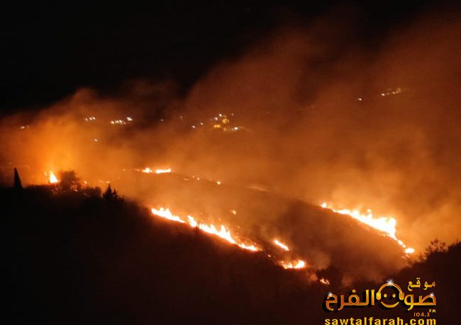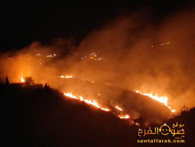 وقد نتج عن هذه الحرائق اضرار جسيمة في المزروعات المثمرة والحرجية بمئات الدونمات من الاراضي