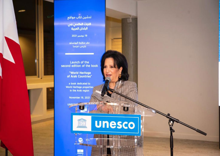 وبهذه المناسبة، قالت الشيخة مي بنت محمد آل خليفة: «من مقر منظمة اليونيسكو، الشريك الأهم للبلدان العربية في حفظ وصون التراث العالمي والإنساني لأوطاننا، نطلق هذا النسخة الثانية من هذا الكتاب الذي يوثق لمعالمنا ومواقعنا الثقافية والطبيعية على قائمة التراث العالمي. ونشكر المنظمة، وعلى رأسها المديرة العامة السيدة أودريه أزولاي، للتعاون الكبير في مجال حفظ الإرث الإنساني في العالم»، مضيفة: «لقد سجلت بلدان منطقتنا العربية خلال العقد الماضي كثيراً من المعالم والصروح الثقافية الأثرية والطبيعية على قائمة التراث العالمي، وهو ما يعزز الخريطة التراثية العربية التي تعكس ثراء مكونات الوطن العربي البشرية والحضارية والطبيعية، وتعرّف العالم بما لدينا من إسهامات في حكاية الحضارة الإنسانية».