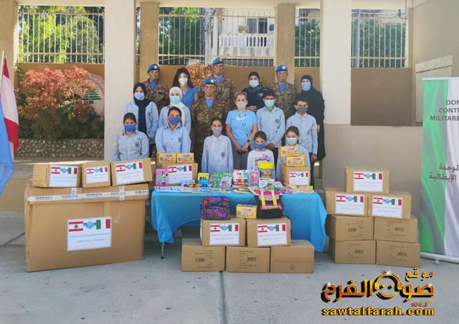 قدمت القوة الإيطالية العاملة في إطار قوة الأمم المتحدة المؤقتة ” اليونيفيل” هبة عبارة عن أدوات قرطاسية لفائدة طلاب المدرسة الرسمية الأولى في صور” بحضور المديرة ايمان جمعة السمرا والطاقم التعليمي وضباط ايطاليين.