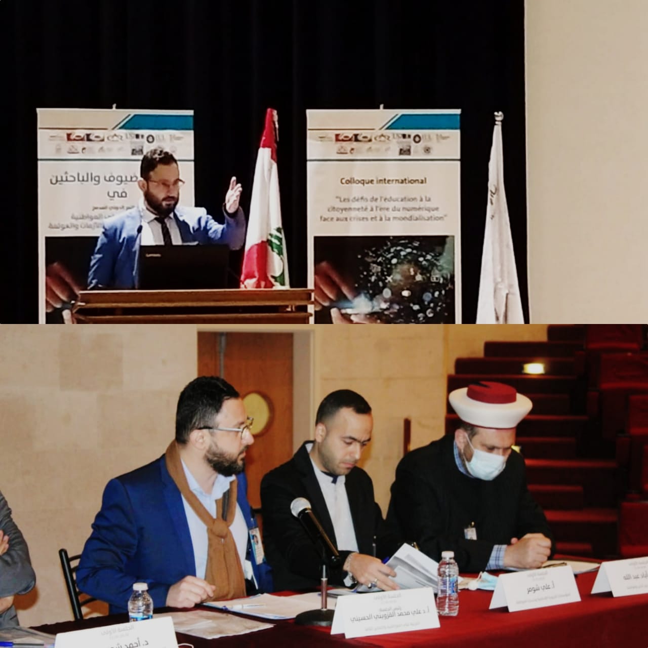 وحضر حفل الافتتاح الى المنظمين حشد كبير من الأكاديميين وممثلو جامعاتٍ محلية وعربية ودولية وبعثات دبلوماسية، وألقى عضو اللجنة العلمية للمؤتمر ا.د. القزويني الحسيني ، كلمةً باللغة الفرنسية، شَكر فيها المشاركين والحضور و بخاصة كل من ساهم في تنظيم هذا المؤتمر الدولي الذي أقيم حضورياً في ظل ظروف استثنائية على جميع الصعد، و تطرق فيها الى الواقع اللبناني من باب المواطنية قائلاً :« نريد أن يشكل لبنان بلدا استثنائيا بين جيرانه، لكن سرعان ما ننسى بأن هذه الدولة اللبنانية نفسها ولدت من رحميّ ديانتين اُريد لهما ان تتعارض الواحدة مع الاخرى كما ننسى أو نتناسى أن فكرة الكيان اللبناني بنيت على أساس ” الأرض-الملجأ” للطوائف المضطهدة، أقليةً كانت أم أكثرية، فالبلد “الاستثناء” يكون اسماً على مسمىً حين يتخطى فيه، على سبيل الذكر لا الحصر، أهل الجبل، موارنةً ودروز، خلافاتهم التاريخية وحين يتقبل جناحا الديانة الاسلامية، سنةً وشيعة، فكرة أن ما يجمعهم هو أكبر وأسمى مما يختلفان عليه.