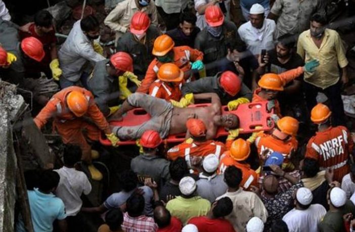 وتمكن المسعفون من إخراج 20 شخصا أحياء من بين أنقاض المبنى في بلدة بهيواندي، القريبة من بومباي، عاصمة البلاد المالية.