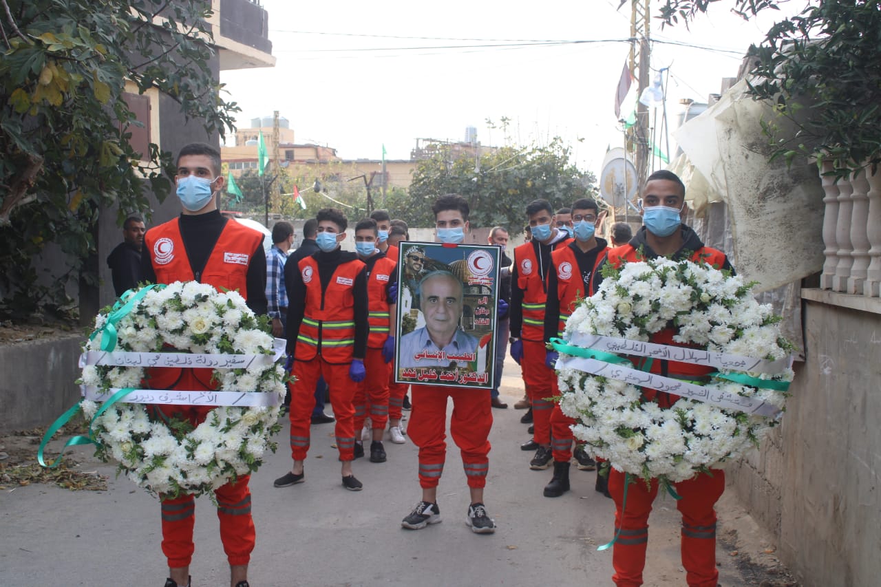 بموكبٍ جنائزي كبير تقدمته “4” سيارات إسعاف تابعة لجمعية الهلال الأحمر الفلسطيني -مستشفى الشَّهيد محمود الهمشري، شيّعت جمعية الهلال الأحمر وعائلة الشّهيد وأبناء شعبنا الفلسطيني في بلدة البيسارية وتجمعات منطقة صور المرحوم الطبيب الإنساني أحمد خليل فهد إلى مثواه الأخير في مقبرة المعشوق
