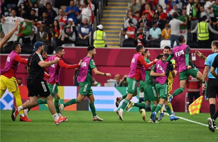 وطالب نجوم منتخب الجزائر بركلة جزاء معتبرين أن كرة البلايلي لمست يد الشعلالي، لكن الحكم الألماني أمر بمواصلة اللعب دون اللجوء إلى الفار.