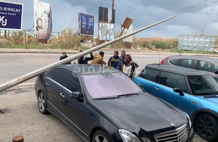 تحركت فرق المستجيب الاول عبر سيارة (الانقاذ ٨٠١ ) التابعة لفوج الإمام علي (ع)-صور ، لإزالة عامود الإنارة الذي سقط على سيارة أحد المواطنين قرب بنك الاعتماد اللبناني في جل البحر ، نتيجة الرياح القوية التي تسيطر على المدينة ، وقد تم معالجة الامر ، واقتصرت الاضرار على الماديات.