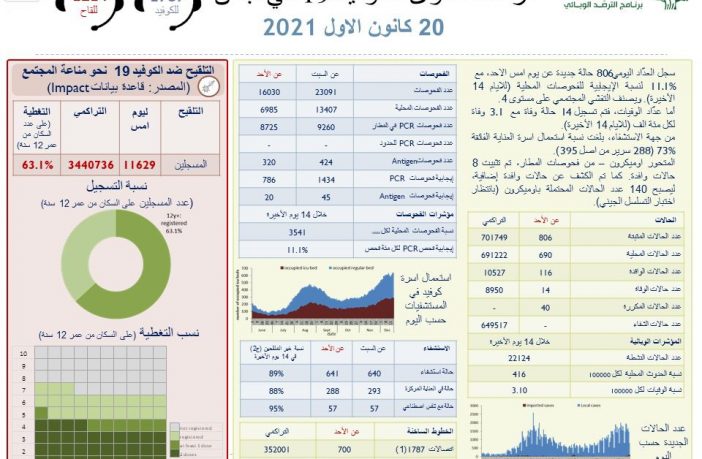 جائحة كورونا تسجيل 806 إصابات جديدة بفيروس كورونا و 14 حالة وفاة في لبنان By F.S ديسمبر 20, 2021 لا توجد تعليقات وزارة الصحة