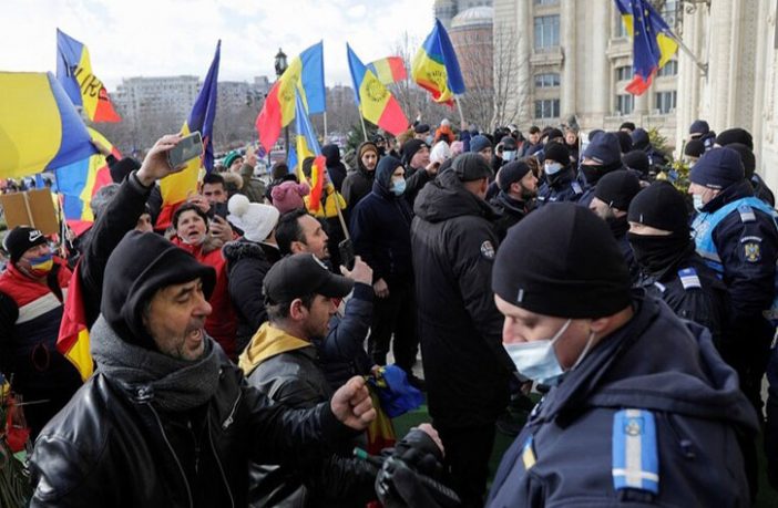 حاول متظاهرون اقتحام البرلمان في العاصمة الرومانية بوخارست لمنع المشرعين من جعل طلب تصريح كورونا إجباريا على العمال قبل دخول منشآت عامة.