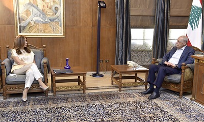 استقبل رئيس مجلس النواب الاستاذ نبيه بري في مقر الرئاسة الثانية في عين التينة نائب رئيس مجلس الوزراء وزيرة الدفاع في حكومة تصريف الاعمال زينة عكر حيث جرى عرض لآخر المستجدات السياسية والامنية .