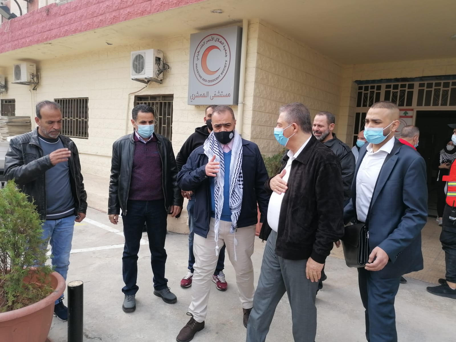 السفير أشرف دبور أبدى إعجابة بالورشة القائمة ذو مواصفات عالمية تضاهي أكبر المستشفيات في لبنان ووجه التحية للرئيس أبو مازن على رعايته وعطائه الدائم وأيضاً التحية للطاقم الطبي والتمريضي والإداري الذي سماهم بالجيش الأبيض وخط الدفاع الصحي الأول.