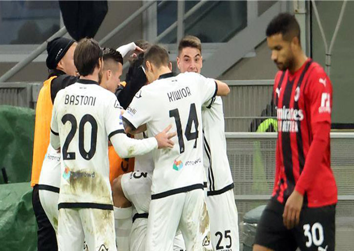 أهدر ميلان فرصة تصدر ترتيب الدوري الإيطالي بصفة مؤقتة، وذلك عقب خسارته على ملعبه ووسط جماهيره أمام سبيزيا 1-2، اليوم الإثنين، ضمن منافسات المرحلة 22 من المسابقة.