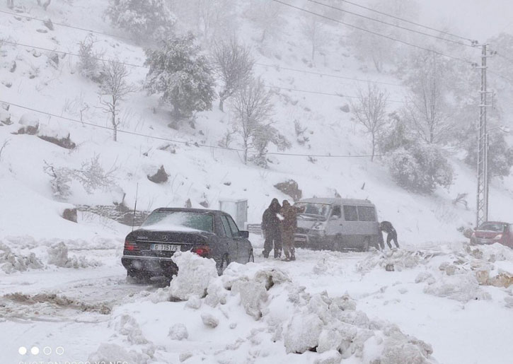 الإثنين: غائم مع انخفاض إضافي بدرجات الحرارة، يتشكل ضباب كثيف على المرتفعات وتتساقط أمطار متفرقة تكون غزيرة في الفترة الصباحية مترافقة بعواصف رعدية ورياح ناشطة وتساقط حبات البرد كما تتساقط الثلوج على ارتفاع 1000م تتدنى لتلامس الـ 800م خاصة في المناطق الشمالية، تخف حدة المتساقطات تدريجياً اعتباراً من بعد الظهر.