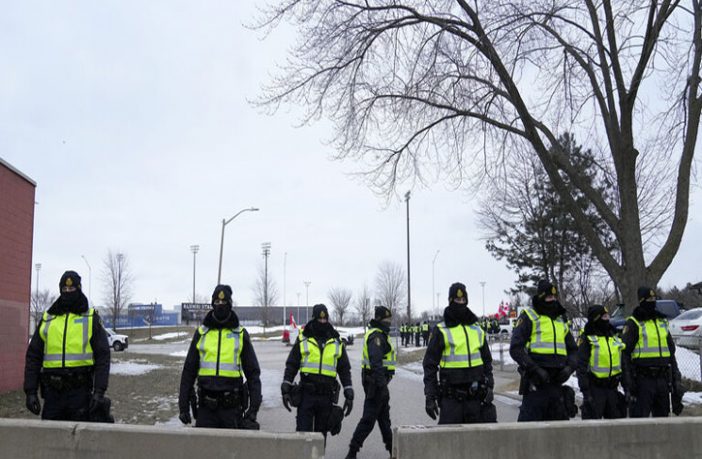 تدخلت الشرطة الكندية فجر اليوم لتفريق فلول معارضي لقاحات كوفيد-19 الإلزامية على الجسر الحيوي بين كندا والولايات المتحدة الذي عطلوه.