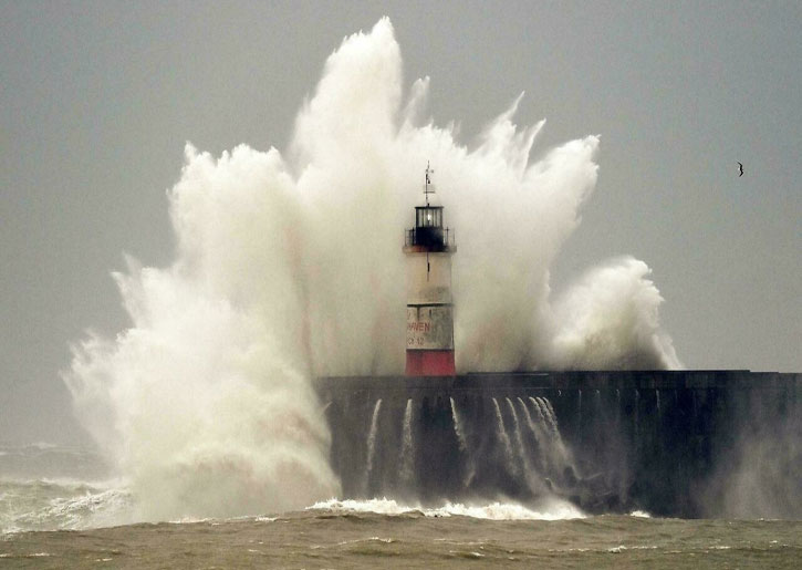 وأظهرت صور أن العاصفة ضربت غرب إنجلترا ووصلت إلى اليابسة في كورنوال، حيث ضربت الأمواج الساحل.
