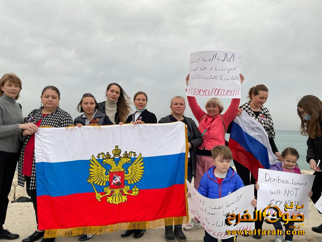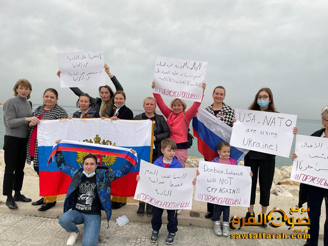 نفذت جمعية الصداقة اللبنانية الروسية وقفة تضامنية في صور قرب الكورنيش البحري الشمالي حيث تجمع عدد من الاطباء والمهندسين وغيرهم من اصحاب المهن الحرة الذين تلقوا علومهم الاكاديمية في روسيا وقفة تضامنية رفعوا خلالها لافتات تندد بالتدخل الامريكي في اوكرانيا والتأكيد على الحق الروسي في حماية امنه واستقراره.