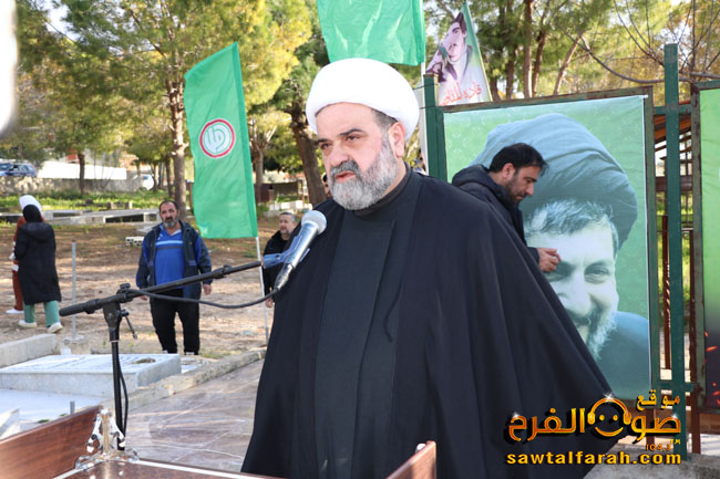تخلل المناسبة كلمة للمفتي عبد الله استذكر فيها الشهداء القادة والقافلة الطويلة من الشهداء الذين نتعلم منهم دروس المجد والإباء، وهم الذين ساروا على الخط والنهج الذي بدأه الإمام موسى الصدر، ولا زلنا نقف حيث أرادنا أن نقف نواجه كل التحديات في مواجهة عدو متغطرس أراد لنا الذلة ولا يفهم إلا لغة المقاومة، أرادنا أن نكون رأس الحربة في مواجهة العدو وكان كما أراد.