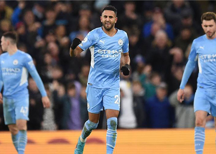 وسجل رباعية السيتي كيفين دي بروين (5-28) ورياض محرز (68-90)، بينما سجل جادون سانشو هدف اليونايتد الوحيد (22).