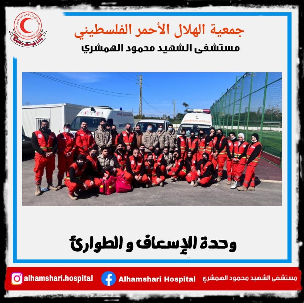 تكملة لحملاتها الطبية في المخيمات والتجمعات الفلسطينية في لبنان، وضمن الخطة ما بين إدارة مستشفى الهمشري وسفارة دولة فلسطين لمكافحة فيروس كورونا والحد من انتشاره والحفاظ على سلامة أبناء شعبنا الفلسطيني في لبنان، نظمت وحدة الإسعاف والطوارئ في مستشفى الهمشري ( المستشفى المركزي لجمعية الهلال الأحمر الفلسطيني في لبنان)، ومنظمة أطباء بلا حدود، وبالتنسيق مع قائد منطقة صور اللواء توفيق عبد الله، حملةً طبية مشتركة في تجمع المعشوق وتجمع المساكن بحضور كشافة الرسالة الإسلامية في حركة أمل ووحدة التدخل الصحي في منطقة صور ،تم خلالها إعطاء لقاح pfizer وإجراء فحوصات PCR ومعاينة مرضى في منازلهم وأدوية مجانية .