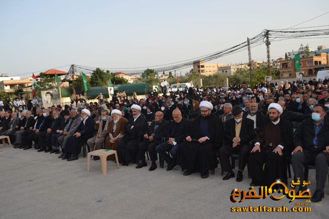 وتابع : اليوم وكأن روح الشهيد خليل جرادي تشخص أمامنا بصورته البهية الملكوتية وهو يحمل سبحة الاتكال على الله، سبحة اليقين بالله ( وليس سبحة خرافة) وليست سبحة من أجل الرياء وإنما كان يعد بحباتها لؤلؤ الولاية لمحمد وآل محمد، يقف أمامنا ليقول لكل الذين يشككون ويضعفون إن تاريخ جبل عامل لم يتعلم المقاومة من أحد ولم يتعلم الجهاد من احد ولم يلملم أبجدية الكرامة من احد، وإنما جبل عامل بذاتياته وكنهه وجوهره هو جبل المقاومة والعزة والكرامة لأنه يلتقي مع أبي ذر الغفاريّ على حب وولاية علي “ع” وعلى طريق كربلاء