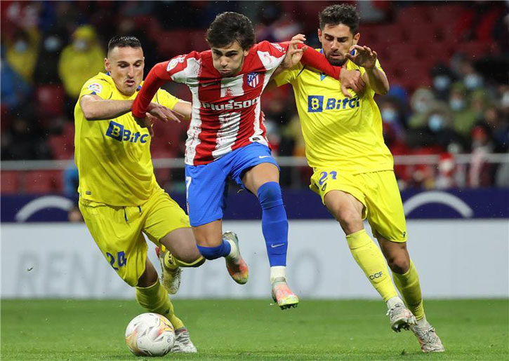 وافتتح البرتغالي جواو فيلكس التسجيل لأتلتيكو (ق3)، لكن ألفارو نيجريدو نجح في إدراك التعادل للضيوف (ق45).
