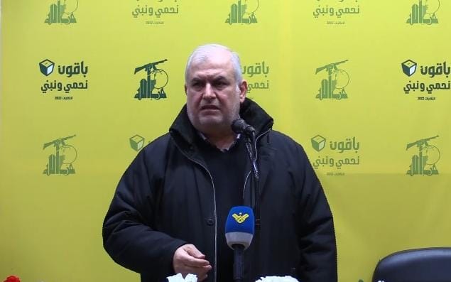 وفي بلدة يحمر لفت رعد إلى أنّ الجميع يسعى لإبعادنا عن ساحة العمل النيابي حتى يقدروا يكفوا شغلهم وفق أجنداتهم ، وقال نحن موجعين رأس هؤلاء الذين يريدون أعمدة الدولة في الأرض ، وهم حاطين راسهم براسنا حتى يشيلونا من المجلس النيابي ويقولوا نحن أخدنا الأكثرية التي يريدونها من أجل تأمين قوانين تسمح لهم بالتطبيع مع العدو الإسرائيلي .