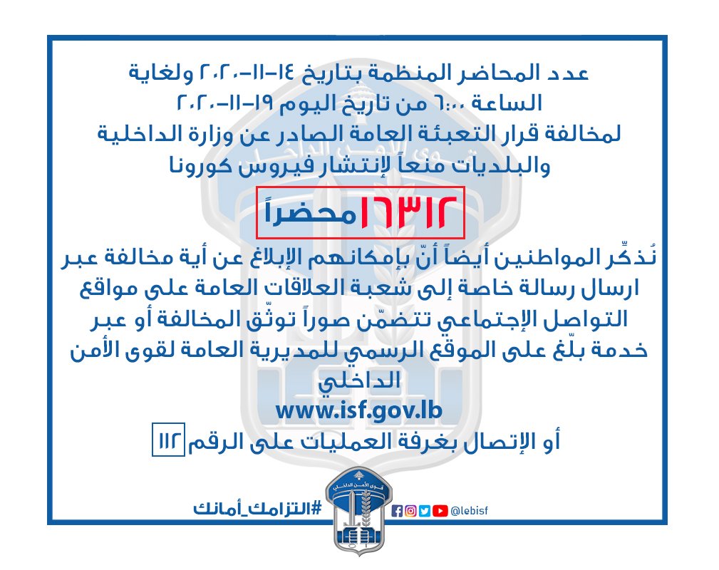 محليات محاضر المخالفات إلى ازدياد.. فكم بلغت حتى صباح اليوم؟ By F.S نوفمبر 19, 2020 لا توجد تعليقات أعلنت المديرية العامة لقوى الأمن الداخلي مجموع محاضر مخالفات قرار التعبئة العامة المنظمة إعتباراً من تاريخ 14-11-2020 ولغاية الساعة 6:00 من تاريخ اليوم 19-11-2020 منعاً لانتشار فيروس كورونا. وبلغ عدد المحاضر 16312. featured