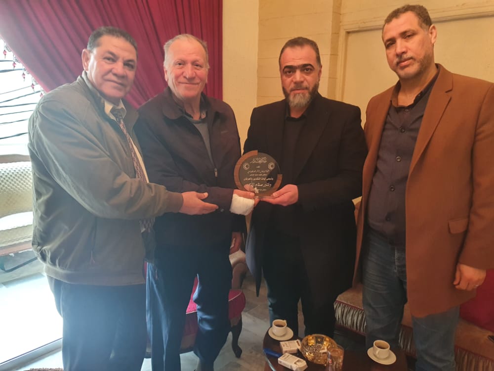 تقديراً لجهوده في خدمة أبناء شعبنا الفلسطيني ومن باب الوفاء لعمله داخل جمعية الهلال الأحمر الفلسطيني في لبنان ، كرّم مدير عام مستشفى الشهيد محمود الهمشري د. رياض أبو العينين وبحضور عضو المجلس الوطني الفلسطيني د. حسن الناطور ورئيس لجنة العاملين في الهلال الأحمر الفلسطيني د. محمد حماد ومسؤول وحدة الإسعاف والطوارئ د. زياد أبو العينين ، الدكتور صلاح الأحمد مدير عام جمعية الهلال الأحمر في لبنان والمسؤول السابق للخدمات الطبية في لبنان .