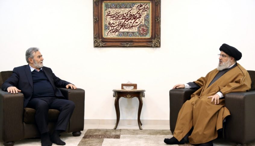 استقبل الأمين العام لـ”حزب الله” السيد حسن نصرالله الأمين العام لحركة “الجهاد الإسلامي” زياد نخالة والوفد المرافق، وجرى “التباحث في آخر الأوضاع على الساحة الفلسطينية وتطور العمليات الجهادية داخل الأراضي المحتلة عام 48 والعمليات التي حصلت في الأيام الأخيرة. وأجرى الطرفان تقويما عاما للأوضاع في المنطقة في ضوء المستجدات الإقليمية والدولية وانعكاسها خصوصا على القضية الفلسطينية”.