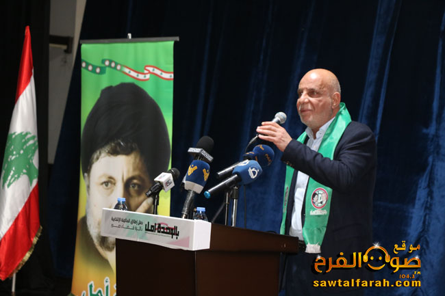 بدوره أكّد النائب علي خريس خلال كلمته أن حركة أمل هي الاشرف والأنقى فهي لا تملك مصرفاً ولا شركة ولا وكالة حصرية بل تملك هماً دائماً هو هم الناس وتفتخر بكل ما قدمته لأهلنا.