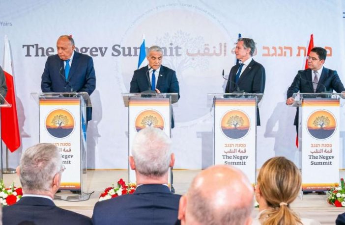 فلأوّل مرّة منذ تأسيس الكيان الصّهيونيّ يجتمع أربعة وزراء عرب في النّقب داخل الأراضي الفلسطينية المحتلّة بضيافة إسرائيليّة ورعاية أمريكيّة، اجتماع «قمّة» وصف بالتّاريخيّ في الشّكل والتّوقيت والمضمون!