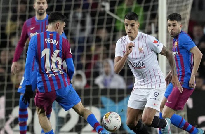 وسدد الشاب بيدري لاعب برشلونة كرة قوية، لكنها مرت أعلى مرمى ياسين بونو حارس مرمى إشبيلية في الدقيقة 27.