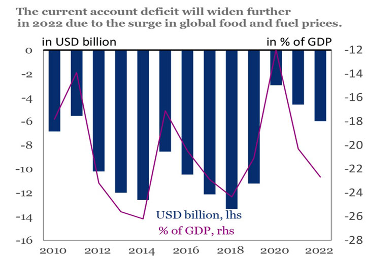 في الوقت نفسه، أدّت أسعار الفوائد المرتفعة الى ضرر أكبر وأكبر على الموازنة، التي كان لا بدّ من تمويلها عن طريق الاقتراض المتزايد، مما خلق حلقة مفرغة من ارتفاع الدين العام واتساع العجز المالي.