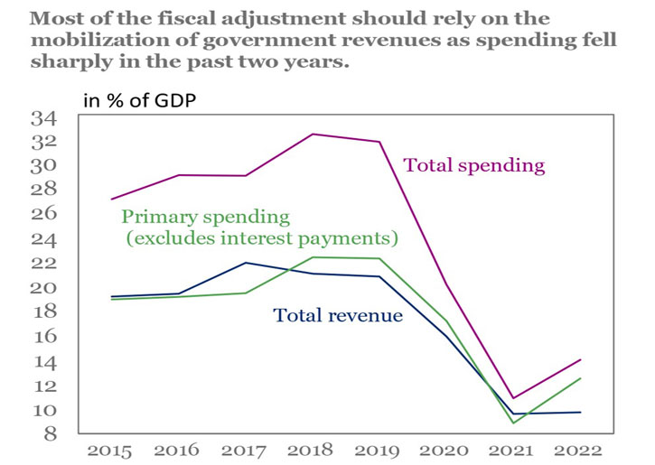 كما يمكن لبرنامج محتمل مع صندوق النقد الدولي أن يضع الدين العام على مسار هبوطي ثابت، من خلال تنفيذ تدابير مالية وإعادة هيكلة الدين العام.