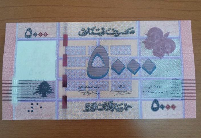 أصدر مصرف لبنان إعلاما للجمهور بأنه سيضع في التداول اعتبارا من اليوم، ورقة نقدية جديدة من فئة الـ /5000/ ل.ل.(خمسة الاف ليرة) موقعة من حاكم مصرف لبنان رياض سلامة والنائب الاول لحاكم مصرف لبنان وسيم منصوري.